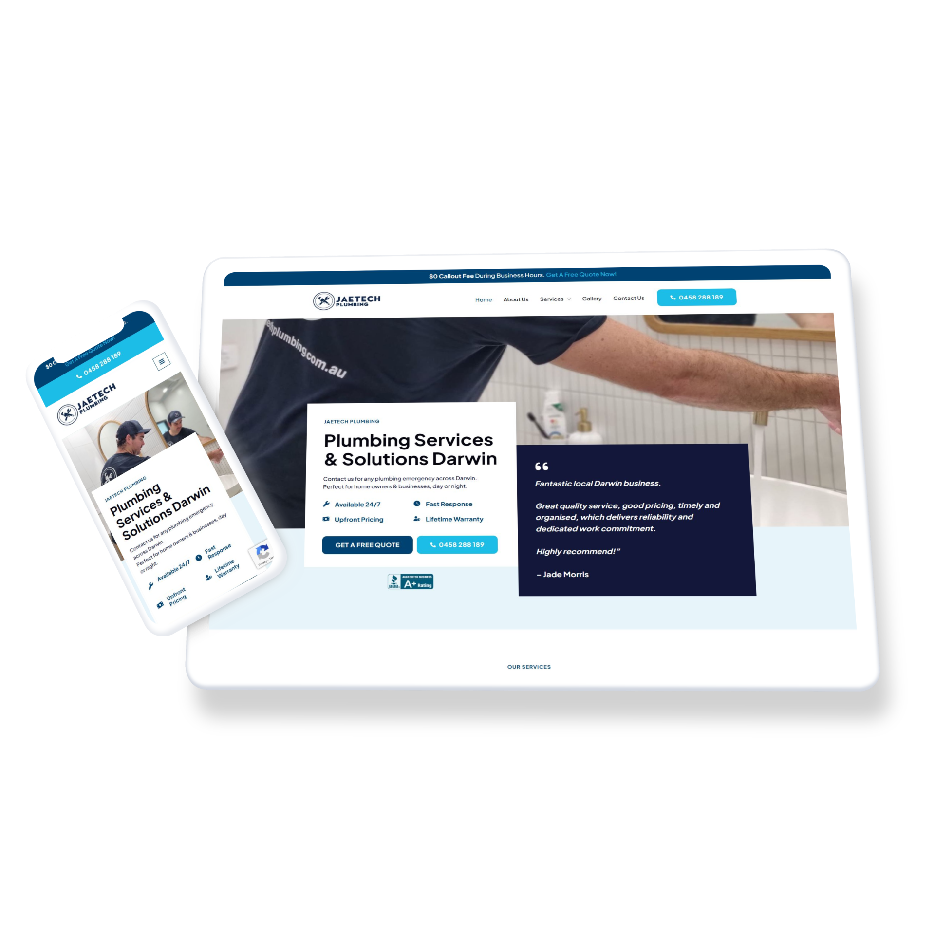 We designed a clean, mobile-optimised website for Jaetech Plumbing that highlights their 24/7 availability, upfront pricing, and lifetime workmanship guarantee. The site structure guides visitors toward immediate action, with clear service breakdowns, trust markers, and an easy quote request system. Alongside the website build, we launched targeted Google Ads campaigns focused on high-intent keywords like emergency plumbing, blocked drains, and hot water repairs in Darwin. With precise geo-targeting, persuasive ad copy, and continuous optimisation, Jaetech Plumbing now receives a consistent stream of quality leads directly from search.