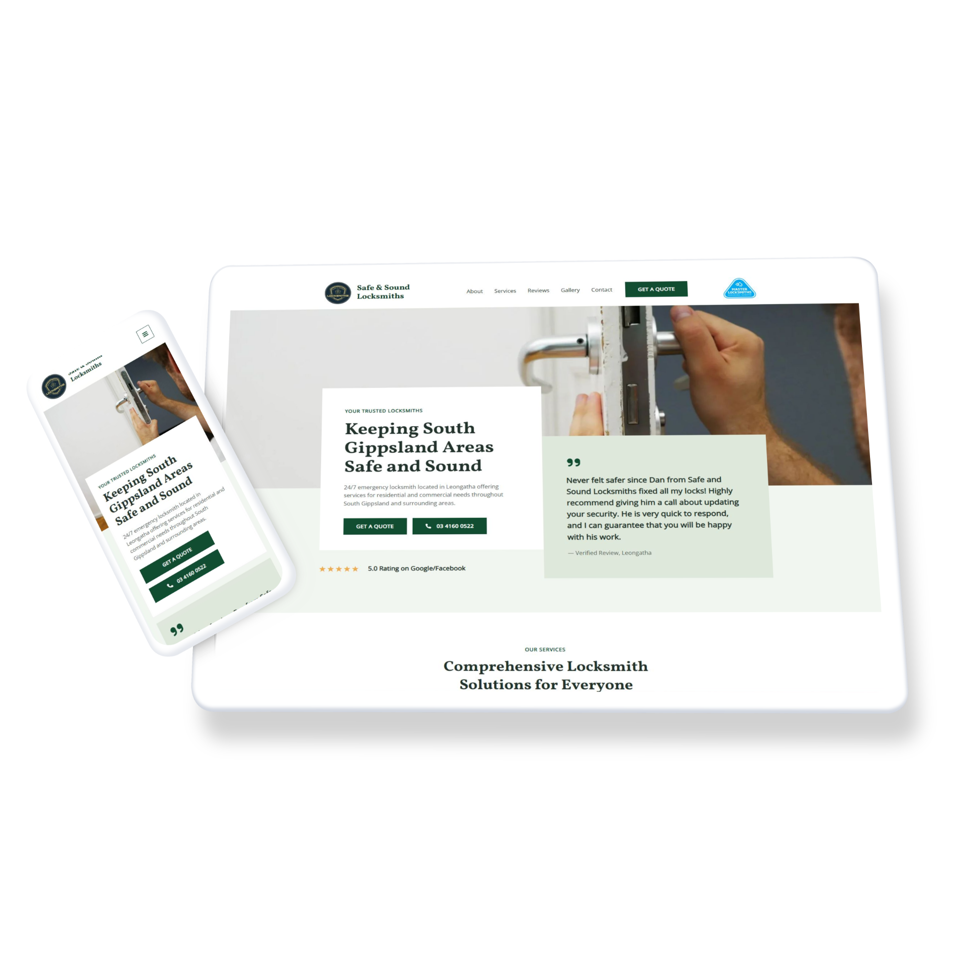 We designed a fast, mobile-friendly WordPress website for Safe & Sound Locksmiths, showcasing their trusted 24/7 emergency locksmith services, rekeying, and security upgrades across South Gippsland. Optimised for speed and SEO, the site ensures local residents and businesses in Leongatha can quickly find and contact them in urgent situations. A clear, professional layout highlights their family-owned values, expertise, and commitment to security. With an easy-to-manage backend, Safe & Sound Locksmiths can effortlessly update their services and content, keeping their online presence relevant as their business continues to grow.